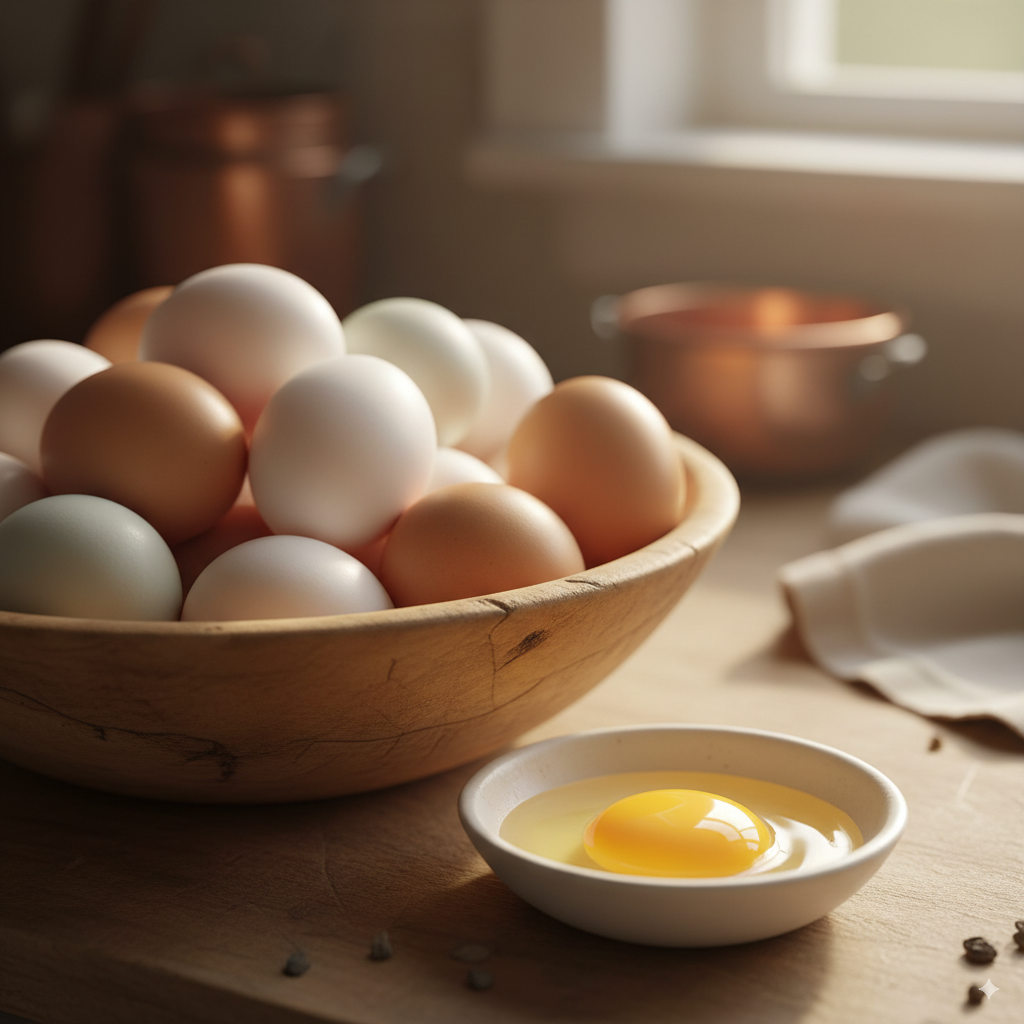 Delicious, golden-yolk eggs from our pasture-raised chickens, ducks, and quails. Our birds live happy lives outdoors, and you can taste the difference.